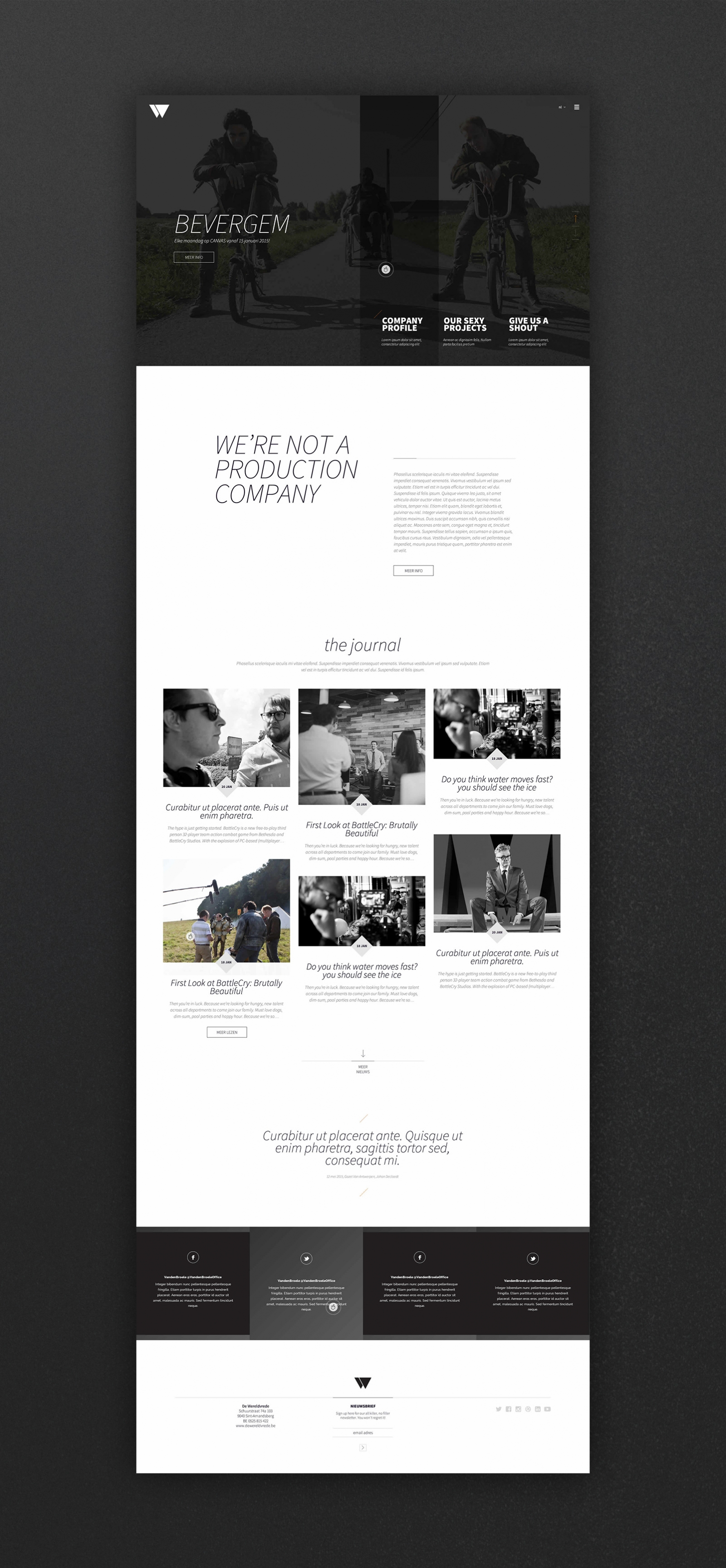 Fan van Bevergem? Wij verzorgden de volledige branding en website van de geniale breinen achter deze serie. De Wereldvrede is een jong productiehuis opgericht in 2013 door director Gilles Coulier en acteur Gilles De Schryver. Hun producties omvatten series voor oa Canvas en langspeelfilms. Deze cleane, goed doordachte website toont op een overzichtelijke manier waar De Wereldvrede voor staat en laat je proeven van hun projecten op een creatieve manier.