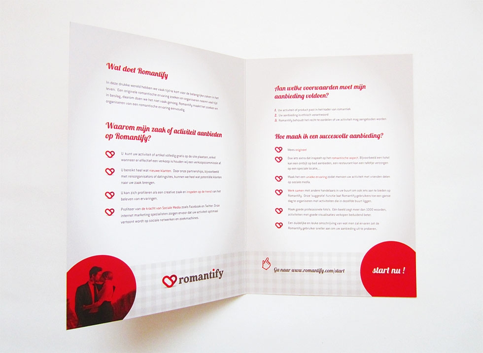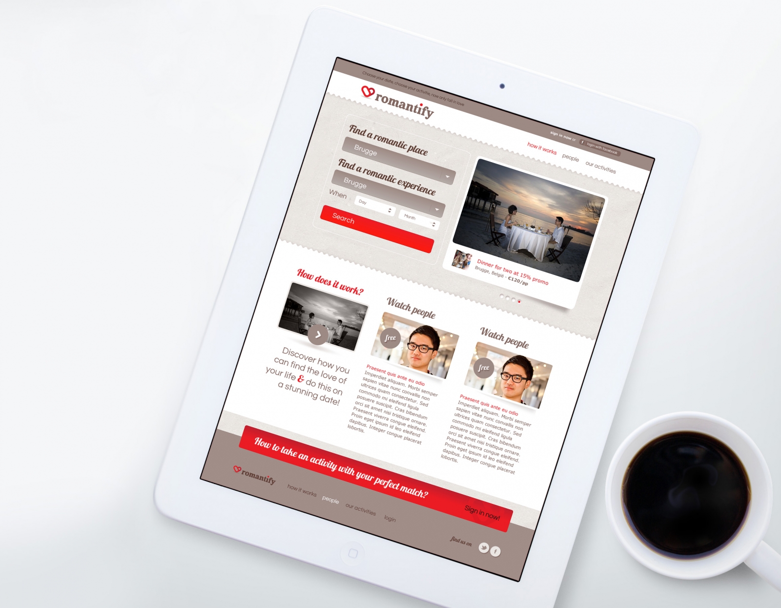 In deze drukke wereld hebben we vaak tijd te kort voor de belangrijke zaken in het leven. Een originele romantische ervaring zoeken en organiseren neemt veel tijd in beslag, daarom doen we het niet vaak genoeg. Romantify maakt het zoeken en organiseren van een dergelijke ervaring eenvoudig.