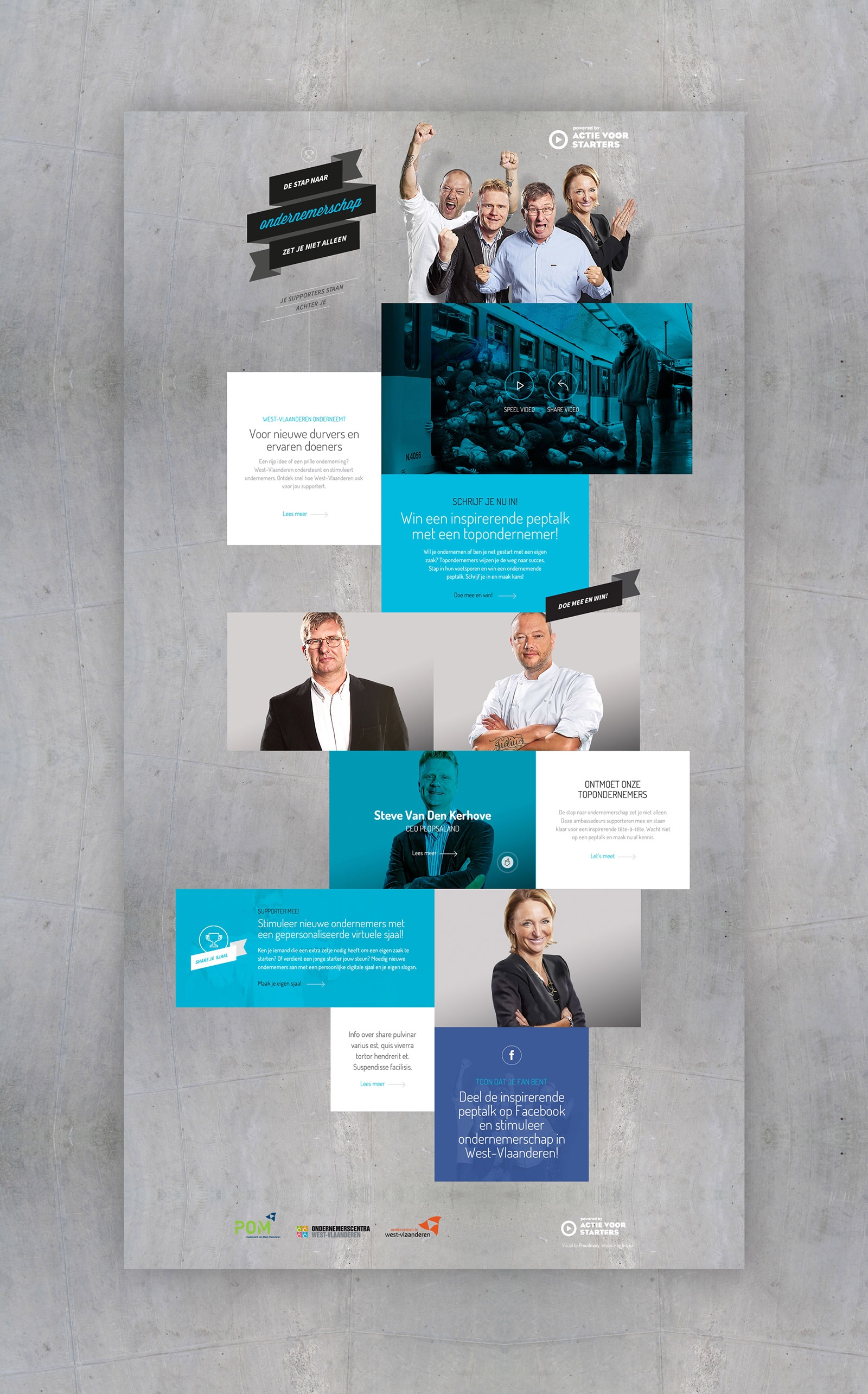 West-Vlaanderen is een provincie van en met ondernemers. Zelf zin om een zaak te starten of ben je reeds een start-up? Met deze sterke campagne ondersteunt Actie voor Starters prestarters en reeds gestarte ondernemers door hen een hart onder de riem te steken.
